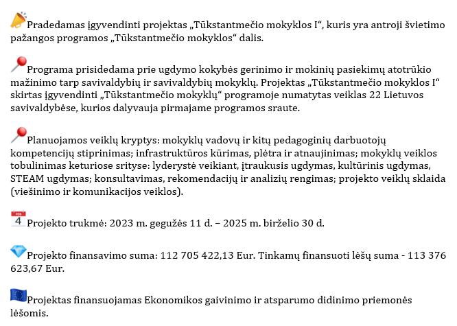 Daugiau informacijos apie projektą: Tūkstantmečio mokyklos I | Europos socialinio fondo agentūra (esf.lt)