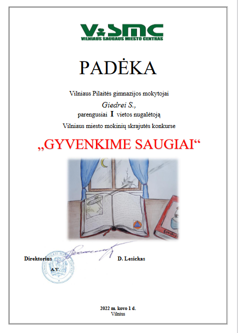 10 klasės mokinė Jurga Žaromskytė tapo Vilniaus miesto bendrojo lavinimo mokyklų 9-12 klasių mokinių dailės olimpiados II etapo laureate.
