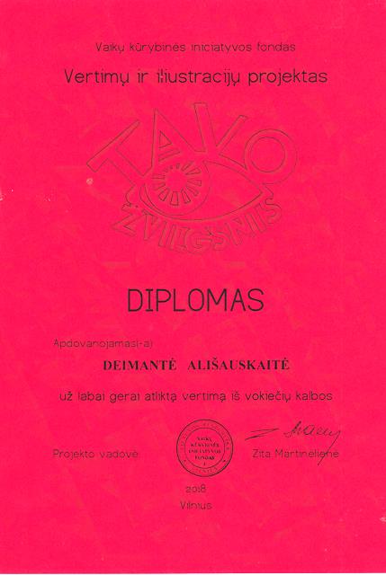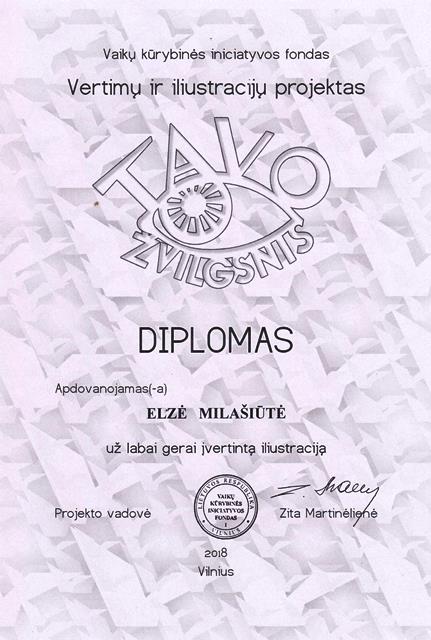 2018-05-25, Diplomas Ic klasės mokinei Elzei Milašiūtei