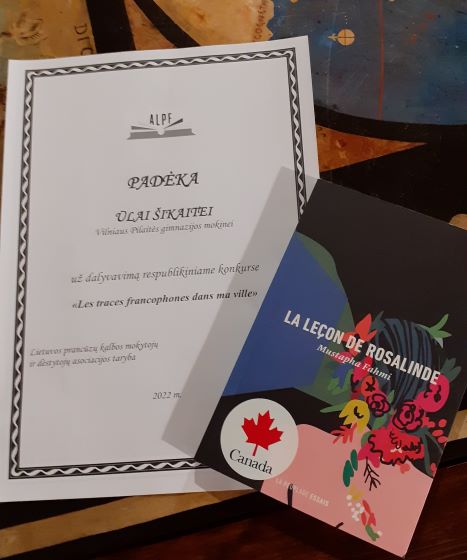 Nuoširdžiausi sveikinimai Ūlai Šikaitei (Ia), kuri dalyvavo respublikiniame prancūzų kalbos konkurse "Les traces francophones dans ma ville" ("Prancūziški pėdsakai mano mieste"). Ji parengė nedidelį gidą vaikams, pristatinėdama garsius prancūzus, kurie gyveno Vilniuje nuo 16 a.