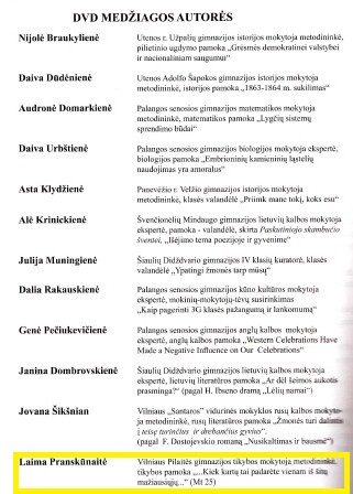 Pilaitės gimnazijos anglų kalbos mokytoja metodininkė R. Balčiūtė - knygos ,,Metodinis rinkinys klasės vadovui" bendraautorė. Knyga išleista kartu su DVD ,,Filmuotos pamokos ir klasės valandėlės" , kuriame yra ir Pilaitės gimnazijos dorinio ugdymo mokytojos metodinikės Laimos Pranskūnaitės vedamų pamokų fragmentai.
