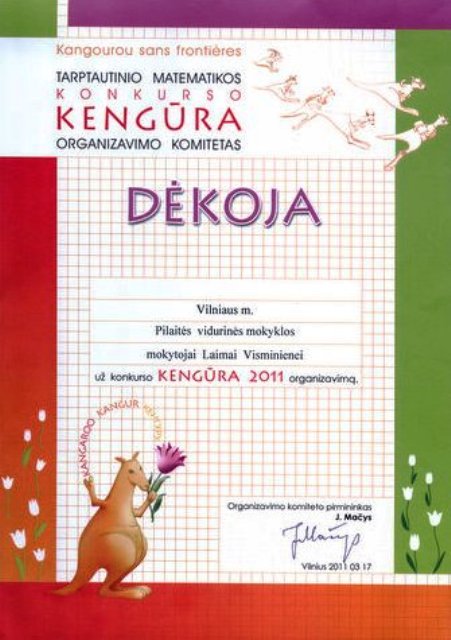 2012. Diplomas kūno kultūros mokytojai Daivai Kapčinskienei