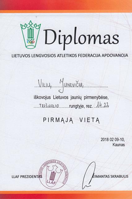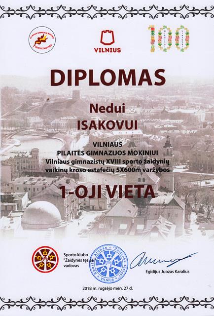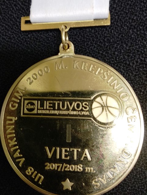 Su Vilniaus m. KREPŠINIO MOKYKLOS komanda krepšinio čempionate iškovojusį I vietą LIETUVOS MOKSLEIVIŲ KREPŠINIO LYGOJE U18 vaikinų gim. 2000 m.