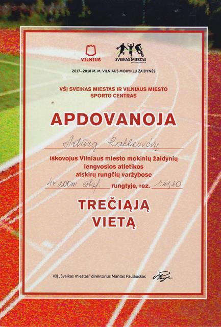 Dėkojame mūsų sportininkams už dalyvavimą ir linkime sėkmingų startų Vilniaus m. gimnazijų lengvosios atletikos čempionate.
