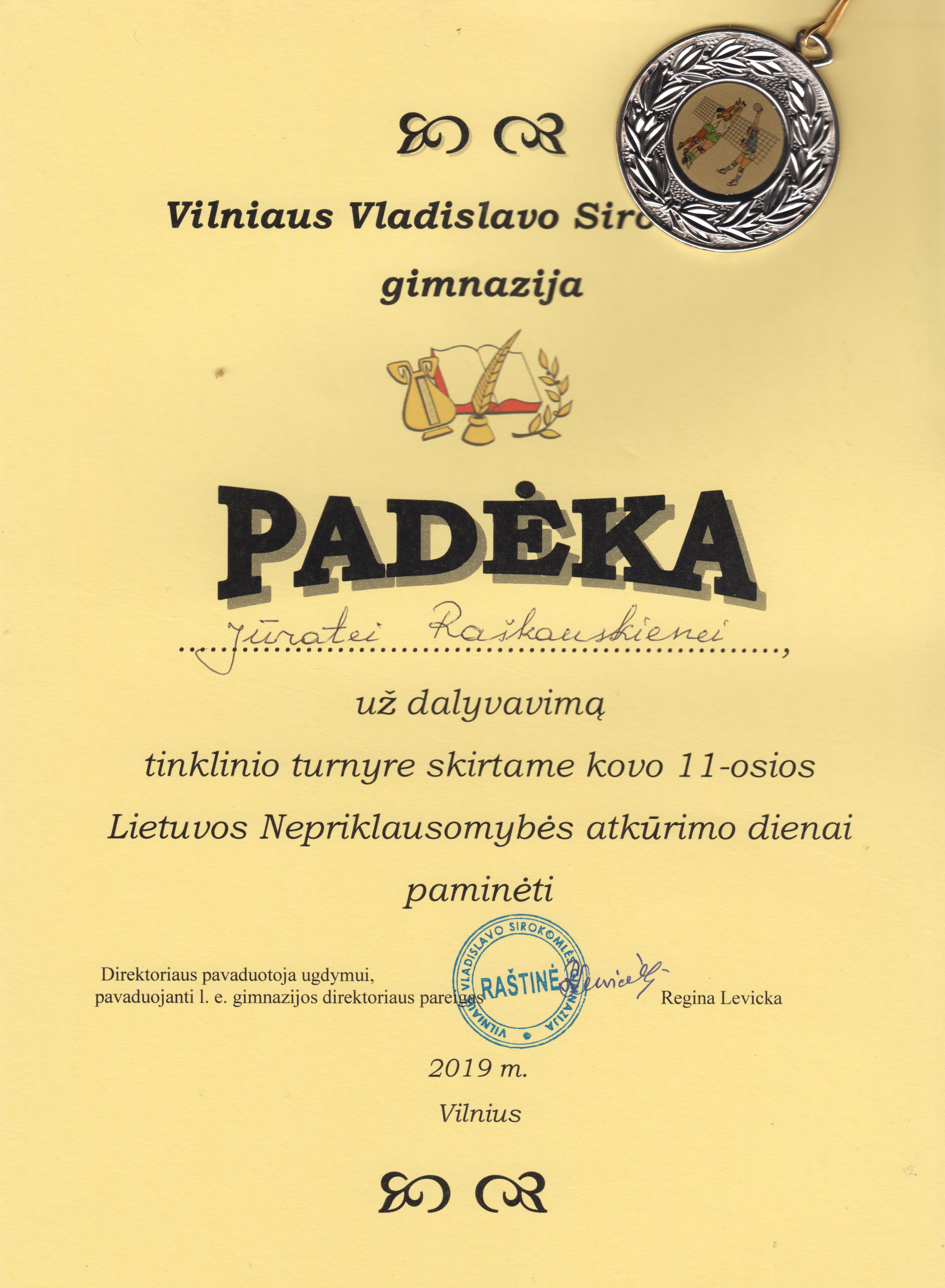 Pilaitės gimnazijos merginų tinklinio komanda dalyvavo turnyre, skirtame Lietuvos Nepriklausomybės atkūrimo dienai paminėti. Pilaitiškės varžėsi su V. Sirokomlės ir A. Mickevičiaus gimnazijų komandomis. Iškovota antroji vieta.