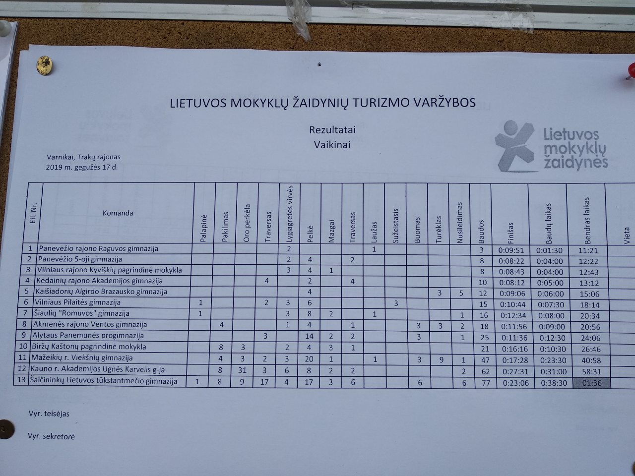 po įtemptos kovos užėmusią VI vietą Lietuvos mokyklų turizmo varžbose.