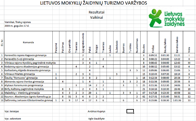 Sveikiname Pilaitės gimnazijos vaikinų turizmo komandą (Skirmantą Bridikį -IIIh kl., Edviną Čatrovskį - IIIh kl., Roką Stasevičių - IId kl., Nedą Isakovą - IIIa kl.),