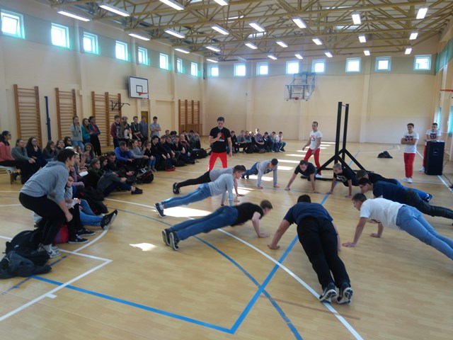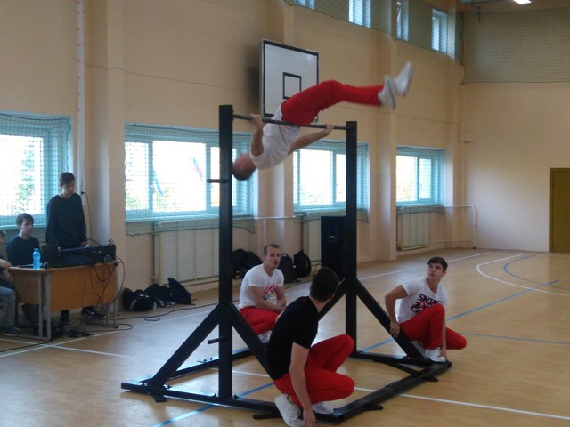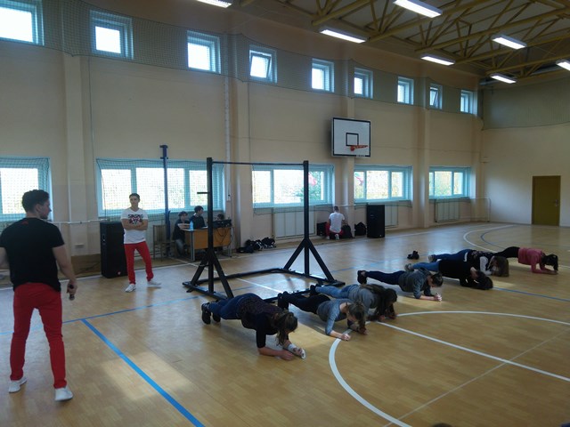 Spalio 18 dieną mūsų gimnazijoje vyko netradicinė kūno kultūros pamoka – seminaras ,,Gatvės gimnastika“. Gatvės gimnastikos komanda ,,Project Mayhem”