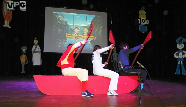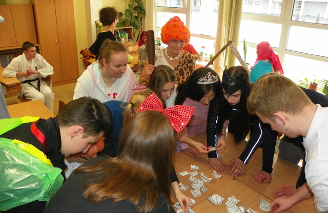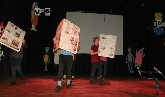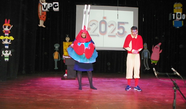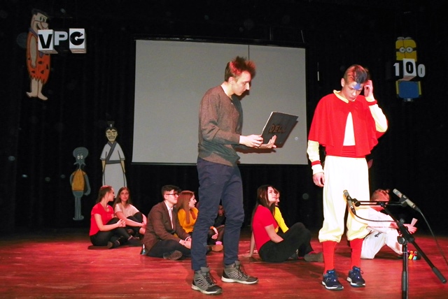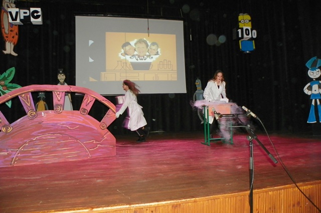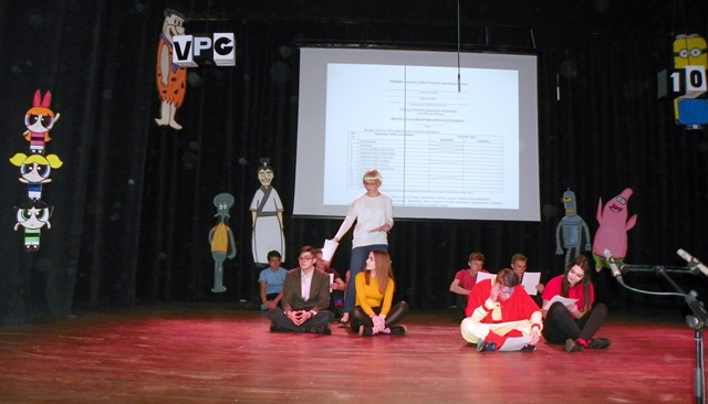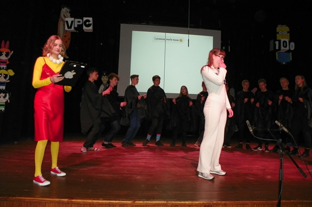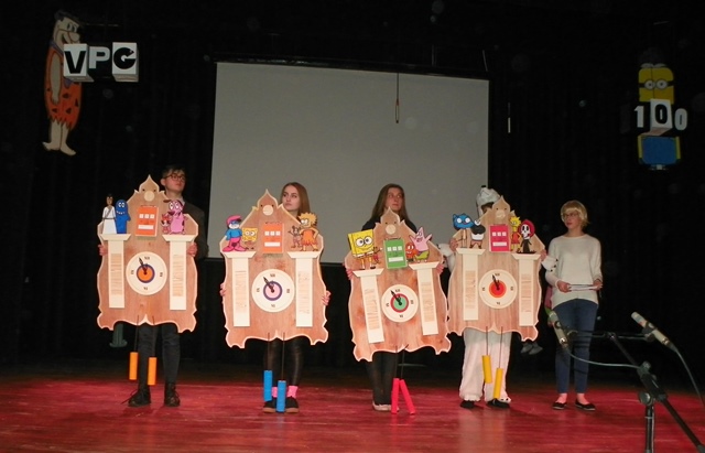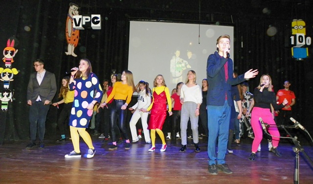 Pasimėgavę netradiciniais šimtadienio pusryčiais gimnazijos valgykloje, pasivaržę animacinėse dirbtuvėse, ketvirtokai bei kiti VPG bendruomenės nariai ir svečiai susirinko vakarinei daliai į gimnazijos aktų salę. Ačiū trečiokams ir jų auklėtojams bei patiems ketvirtokams – nuobodu tikrai nebuvo. Tai matyti ir iš užfiksuotų akimirkų...