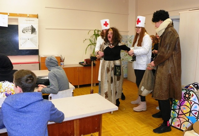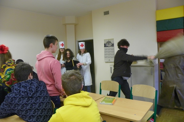 IId ir IIc kl. persirengėlių grupės su teatro mokytoja surengtas emocingas kvietimas į šventę per 5-ąją pamoką buvo tikras viesulo proveržis...