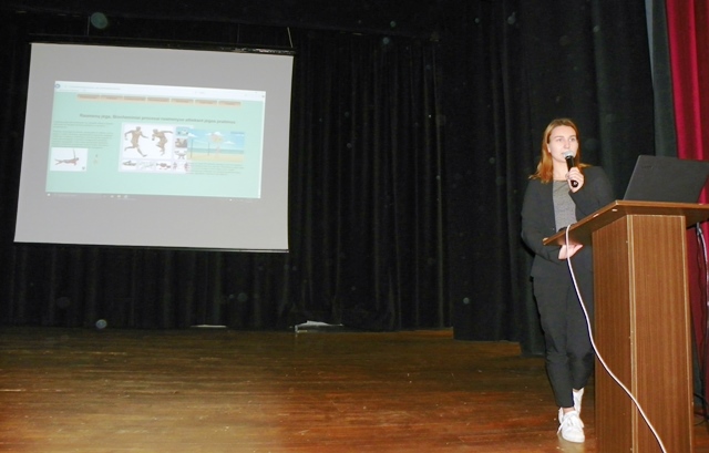 8. „Raumenų jėga. Biocheminiai procesai atliekant jėgos pratimus“. Pranešėja Emilija Grišmanauskaitė (3c). Mokytoja J. Raškauskienė.