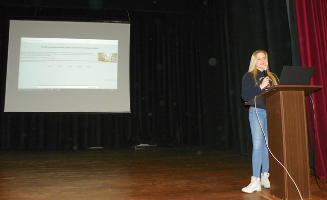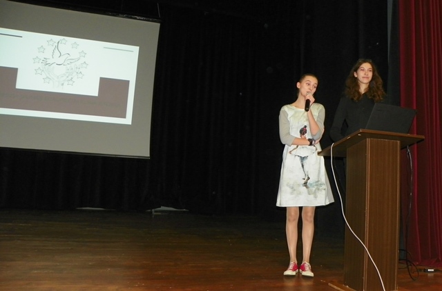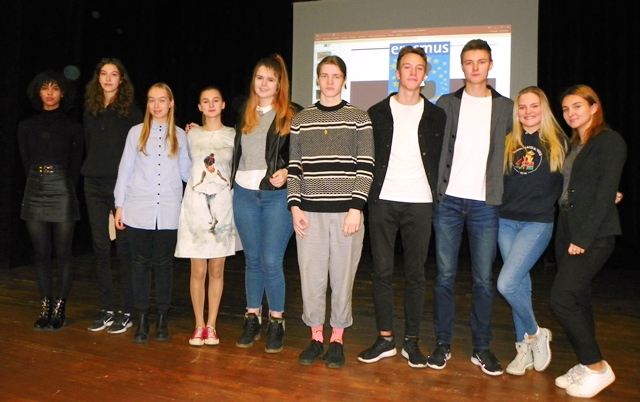 10. „Erazmus + projektas „Europiečiai kuria istoriją“. Pranešėjos Izabelė Danilovičiūtė (4g) ir Dalia Minelgaitė (4h). Mokytojas P. Bakanas.